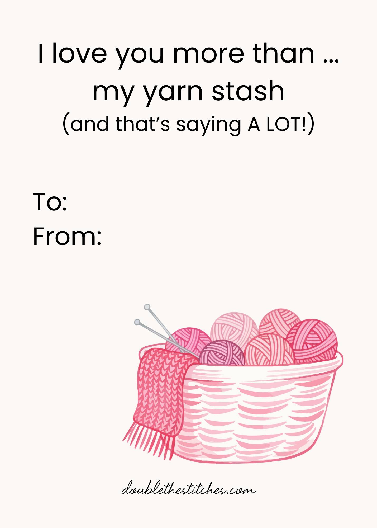 I have a little "Galentine" gift for you! I've designed a free printable card you can use for your knitting besties, your favorite local yarn shop owner, or even as a cheeky little hint left on the fridge for your family!